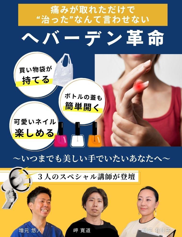 一つでも当てはまる方は、ぜひご参加ください。・原因不明と言われてきたヘバーデンの本当の原因が分かる